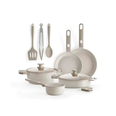 Complete kitchen battery: 10 pieces. 24 cm high saucepan + 1 lid 24 cm + low saucepan 28 cm + 1 lid 28 cm + frying pan 22 cm + 26 cm frying pan + 16 cm saucepan + serving spoon + spatula + tongs + 2 detachable silicone handles. High quality cast aluminium: made of durable cast aluminium with three-layer PFOA-free non-stick coating. Suitable for all types of cookers: suitable for all types of cookers, gas, induction, ceramic and electric thanks to the quality of materials that quickly expand heat. HANDLES INCLUDED IN THE SET: This complete set includes removable and thermo-resistant silicone handles with gripper effect to facilitate a correct and secure grip. OVEN-FRIENDLY: The saucepans are oven safe up to 220ºC, allowing great versatility for cooking from cakes to stews. ENGLISH BRAND. Designed in Barcelona., Weight: 16.53466965 pounds, Manufacturer: Isogona
