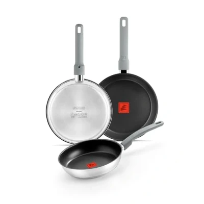MONIX Elite Non Stick Set of 3 Frying Pans 20 24 26 cm, 18/10 Stainless Steel, Tricayer PFOA Free, TherMonix Temperature Indicator, Softouch Ergonomic Handle