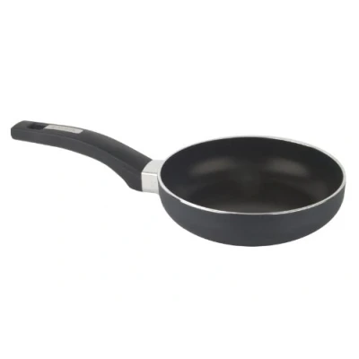 Bakelite heat-resistant ergonomic easy stacking handle Dual non-stick coating Base thickness 3 to 3. 5 mm Non-stick coating exterior finish Measures 18 cm in diameter