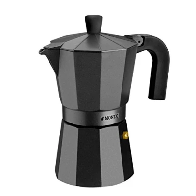 Monix Vitro Noir Aluminium Non Stick 1 Cup Coffee Maker, Black, 30 x cm