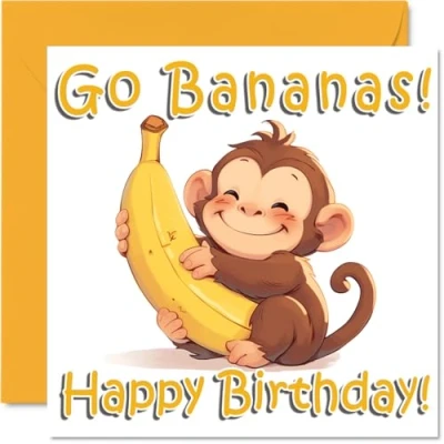 Monkey Birthday Cards Animal Puns Happy Card for Son Daughter Brother Sister Grandson Granddaughter Niece Nephew Cousin, 145mm x Bday Greeting