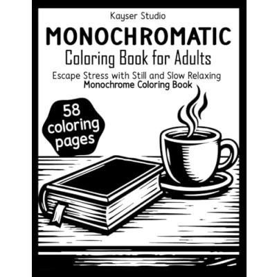 Monochromatic Coloring Book for Adults: Escape Stress with Still and Slow Relaxing Monochrome featuring Cozy Flowers, Animals, Landscapes More Relief Relaxation