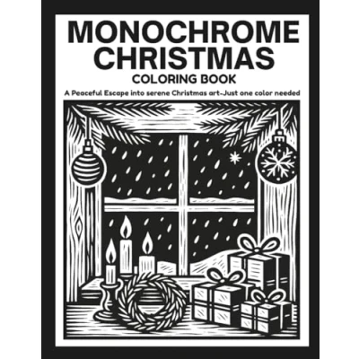 MONOCHROME CHRISTMAS: Peaceful Stress Relief Coloring Book For Teens, Adults And All Ages with Festive Snowy Christmas Arts to Color One Black Pen (One Book)
