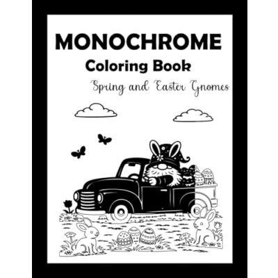 Monochrome Coloring Book Spring and Easter Gnomes