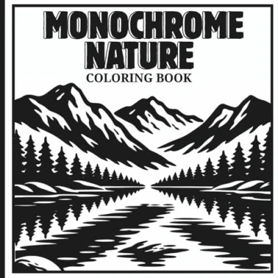 Monochrome nature coloring book: One Color Black & White Illustrations for Stress Relief and Mindful Relaxation
