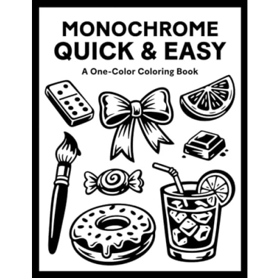 Monochrome Quick and Easy Coloring Book: One Color Easy, Cozy, Stress Relief for Adults, Teens, All Ages (Monochrome Coloring)