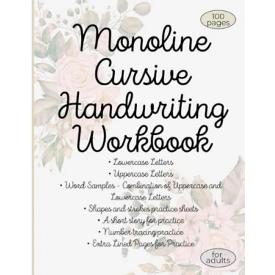 Monoline Cursive Handwriting Practice for Adults: A Workbook Adult Penmanship, Letter Tracing Workbook, Elegant Handwriting: Calligraphy & Hand Lettering Beginners