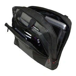 Stylish messenger bag in sleek grey and black finish. Zipped iPad section on the front. Zipped organiser section for stationery and papers. Padded laptop section will protect laptops up to 15.6 inches.