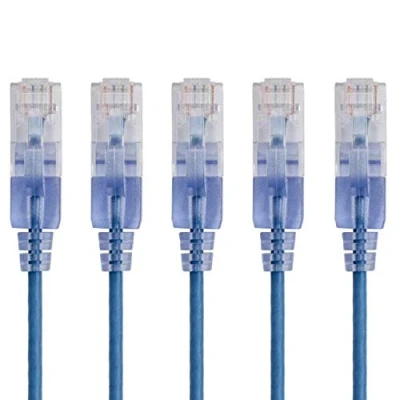 Monoprice Cat6A Ethernet Network Patch Cable 30 Feet Blue 5 Pack, 10G SlimRun Series
