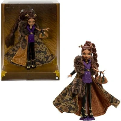 Monster High Doll, Clawdeen Wolf House of Collectible with Faux Fur Jacquard Coat, Purple Blazer Dress, Pantaboots and Golden Accessories, JDR66