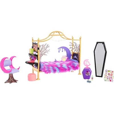 Monster High Toys, Clawdeen Wolf Bedroom Playset with Accessories and Sticker Sheet, Furniture Décor, HMV77
