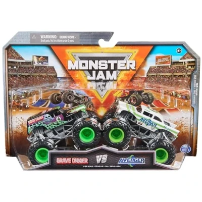 OFFICIAL MONSTER JAM TRUCKS: Create your own epic Monster Jam showdowns with the 1:64 scale die-cast 2-Pack. Each 2-Pack features the most popular and coveted trucks, ready to face-off HEAD-TO-HEAD ACTION: Put on an awesome Monster Jam show with the 2-Pack. Each set comes with 2 iconic Monster Jam monster trucks, including Grave Digger vs. Higher Education, Bulldozer vs. Racing Stripes and more AUTHENTIC REPLICAS: Each 1:64 die-cast Monster Jam monster truck features realistic details and lifelike graphics, official BKT tyres and a styled chassis that make it feel like you’re holding the real thing COLLECT THEM ALL: Add all of the 2-Pack matchups to your collection (each sold separately) and smash your way to victory. These toys for kids are the perfect gifts for boys and girls 3 and up Includes: 2 Monster Jam 1:64 Scale Monster Trucks This item is picked at random from an assortment of models, which may differ from those shown, Manufacturer: spin master