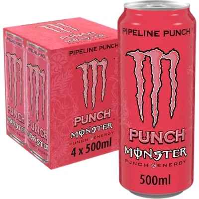 Punch Monster Pipeline Punch 500ml can - carbonated energy drink with taurine, L-carnitine, inositol and B vitamins. Monster Energy Pipeline Punch is the perfect blend of the best flavours Hawaii has to offer plus the Monster Energy blend. Juiced Monster delivers full fruit flavours with 160mg of caffeine. Serve cold for maximum refreshment.