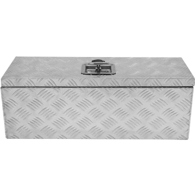 General description Upgrade your tool storage with our heavy-duty aluminium tool box, designed to offer exceptional functionality and security for professional tradespeople and DIY enthusiasts. With a compact design yet generous 35 litre storage capacity, this versatile tool box is suitable for a wide range of applications. Ideal for fastening onto trailers or the back of pickups, this tool box is perfect for securely storing tools, straps, and coupling locks, providing you with peace of mind wherever you go. Constructed from aluminium checker plate, this tool box is engineered for maximum strength and durability. Its fully waterproof design, complete with a rubber seal around the lid and opening, prevents water and dirt from entering, ensuring all items inside remain clean and dry. The robust welded construction further enhances its durability, making it a reliable companion for tough environments. Security is paramount with our aluminium tool box, which is fully lockable and comes