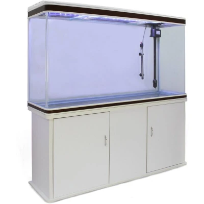 General description This 300 litre (65 gallon) 4ft white fish tank combines sophistication with a tranquil atmosphere, making it an ideal feature for both home and work environments. Its modern design enhances any reception area or home decor while providing a practical habitat for your fish. The aquarium comes with a stylish matching matt white cabinet that offers ample storage space within its two-door compartment. The tank features a lovely walnut trim and an impressive curved glass exterior, ensuring perfect transparency and a 180° view of your aquatic friends. Technical specifications Tank Capacity: 300 Litres / 65 Gallons Tank Dimensions: 70cm H x 120cm W x 39cm D Cabinet Dimensions: 66.5cm H x 120cm W x 38cm D Overall Dimensions: 143.5cm H x 120.5cm W x 39cm D Glass Thickness: 11mm Weight: 107 KG (Tank: 74 KG, Cabinet: 33 KG) Power: 300 Watts Plug: 13A, 3 pin UK Plug Filtration Rate: 1800 L/H Viewing Area: 180 Degrees Fish Type: Freshwater, Saltwater & Tropical Cabinet Shelves: