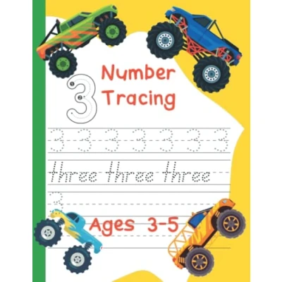 Monster Truck Book for Kids 3 5 Number Tracing Activity Notebook Writing Skills Workbook Kindergarten and Preschoolers Handwriting Practice: 8.5 x 11 Fun