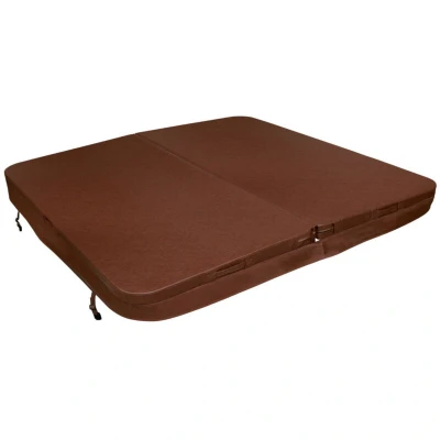 General description Blending functionality, safety, and style, this hot tub cover adds an extra layer of ease to your hot tub experience. With its stylish brown leather finish, it effortlessly complements any outdoor decor, adding a touch of elegance to your hot tub space. Expertly crafted with premium, high-density EPS foam (25kg/m3), the cover delivers exceptional year-round insulation, helping maintain an ideal water temperature for your hot tub and ensuring it's ready for your next relaxing soak. This exceptional heat retention not only reduces hot tub running costs but also promotes an eco-friendly hot tub experience. Technical specifications Colour: Brown Height: 10cm / 0.1m / 3.9” Width: 220cm / 2.2m / 86.6” Depth: 220cm / 2.2m / 86.6” Weight: 21.4kg Materials: PVC Leather, EPS Foam, Plastic, Galvanised Iron, Marine grade top vinyl Insulation type: EPS Foam EPS Foam Density: 25kg/m3 Flame resistant and retardant: Yes Number of Handles: 6 Number of lockdown straps: 4 Usage The