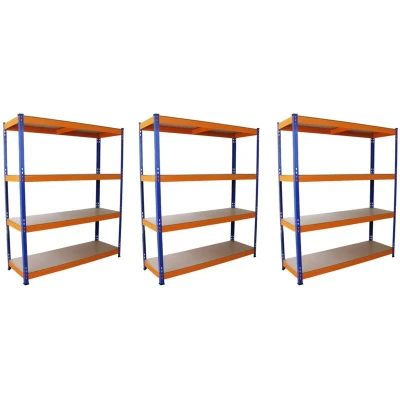 General description The S-Rax heavy duty garage shelves come in a convenient 3 unit bundle, providing an excellent solution for organizing your tools or stock. With a massive capacity of 265kg per shelf, these shelves are designed to create a tidy and efficient environment. Technical specifications Dimensions per bay: 150cm wide x 50cm deep x 180cm high Thickness of shelves: 1.2mm Weight capacity per shelf: 265kg Total capacity per unit: 1060kg (when weight is evenly distributed) Material: Steel and MDF Number of shelves per bay: 4 (total of 12 shelves for 3 bays) Installation 100% boltless design for easy assembly Each piece easily slots into place with the help of a rubber mallet Comes with moulded feet for added stability Usage Ideal for storing tools, stock, and other heavy items Perfect for garage, workshop, or storage room organization