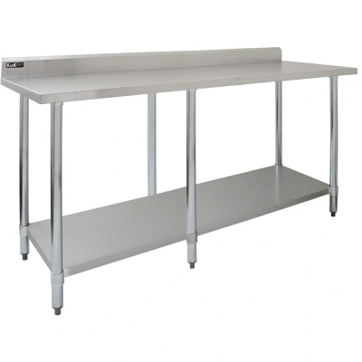 General description Add much needed workspace to your commercial kitchen with this incredibly durable 7ft prep table. This bench provides a sturdy, spacious surface for chopping, preparing, and assembling – essential for busy restaurant and catering establishments. Made from top quality 430 stainless steel, the table is extremely strong and durable, making it able to withstand daily use in demanding commercial kitchens and food preparation areas. The smooth stainless-steel construction also makes the bench super easy to clean and extremely hygienic, perfect for environments that need to maintain a high level of food hygiene. Cleaning is made even easier with the 2 included microfibre cloths which provide a thorough clean every time. Technical specifications Colour: Silver Material: 430 Stainless Steel Product Weight: 33.6kg Weight Capacity: 250kg Height: 90cm / 0.9m / 35.4” Upstand Height: 10cm / 100mm / 3.9” Width: 210cm / 2.1m / 82.7” Depth: 60cm / 0.6m / 23.6” Installation Assembly