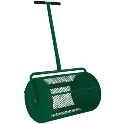 General description Provide your lawn with the essential nutrients it needs to flourish using this super practical compost spreader from T-Mech! Multi-purpose, this spreader is suitable for all types of fine-ground topdressing materials including compost, peat moss, topsoil, seeds, and manure. With an impressive 80L capacity, this roller provides superior coverage, making it incredibly time and labour-saving. The smart diamond-shaped 1/2” x 3/4” slits help to break up the contents for consistent flow and spread of fertiliser to ensure flawless results every time. Technical specifications Colour: Green Material: Powder-Coated 10 Gauge Steel Mesh Thickness: 2.5mm Weight: 10kg Capacity: 2.8 cu ft / 80L Height: 1110mm / 111cm / 43.7” Width: 655mm / 65.5cm / 25.8” Depth: 410mm / 41cm / 16.1” Handle Length: 62 – 67cm / 24.4 – 26.4” Handlebar Width: 300mm / 30cm / 11.8” Opening: Hinged Door Drum Holes: 130mm x 190mm / 1/2” x 3/4” Installation With a quick setup, simply attach the handle
