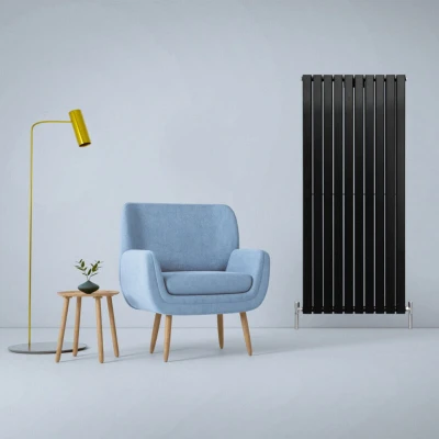 General description If you’re looking to inject some style into your home or workspace, look no further than these ultra-modern designer flat panel radiators. Their sleek design perfectly combines form and function, and the striking Matt Black finish adds a bold feature that complements your interior style. Measuring 1600mm tall and 700mm wide, these radiators are suitable for a range of spaces. Manufactured from premium carbon steel, they are incredibly durable and robust, delivering a much greater heat output level to keep your home warm and inviting. Technical specifications Colour: Matt Black Weight: 53.9kg Material: 1.5mm Premium Carbon Steel BTU: 10190 Height: 1600mm / 160cm / 63” Width: 700mm / 70cm / 27.6” Depth: 58mm / 5.8cm / 2.3” Finish: Triple Layer Powder Coated Individual Flat Tube Size: 60 x 15mm Gap Between Tubes: 10mm Inlets/Outlets Size: Standard 0.5" BSP Bore Compatibility and accessories Compatible with all angled, straight, and thermostatic valves Includes 4 x