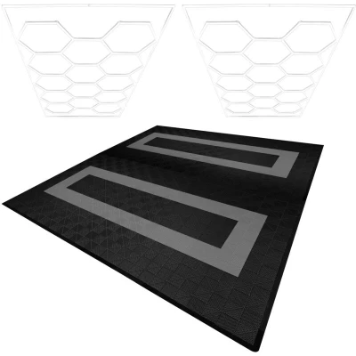 General description Transform your garage, workshop, or gym into a practical and visually stunning space with our premium vented garage floor tiles and innovative hexagon LED lighting bundle. This all-in-one solution combines strength, style, and functionality for a space you'll love to work in or show off. Technical specifications Garage Floor Tiles: Colour: Black & Grey Weight Per Tile: 0.5kg Total Weight: 118.7kg Material: 100% Polypropylene Height Per Tile: 18mm / 1.8cm / 0.7” Width Per Tile: 400mm / 40cm / 15.7” Depth Per Tile: 400mm / 40cm / 15.7” Assembled Width: 600cm / 6m / 126” Assembled Depth: 1200cm / 6m / 236.2” Configuration: 15 Tiles x 15 Tiles Capacity Per Tile: 5 Tonne Hexagon Lighting: Colour: White Weight: 16.6kg Material: PVC Length: 486cm / 4.86m / 191.3” Width: 244cm / 2.44m / 96.1” Depth: 3.5cm / 0.035m / 1.4” Power: 6W Voltage: 100-230V AC Lumen: 110-120 Colour Temperature: 6500K Light Working Temperature: 20-50°C Environmental Working Temperature: -20-45°C