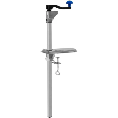 General description Experience effortless can opening like never before with our cutting-edge commercial can opener! This professional tin opener is designed to handle cans of up to 50cm in height, making it a versatile tool for your commercial kitchen. Crafted from premium stainless steel, it is built to withstand the rigors of daily use in busy kitchens, ensuring durability and resistance to wear. Its polished finish is aesthetically pleasing and easy to clean, simplifying maintenance and enhancing hygiene standards. Technical specifications Colour: Silver Weight: 2kg Material: Stainless Steel Height: 760mm / 76cm / 29.9” Width: 114mm / 11.4cm / 4.5” Depth: 385mm / 38.5cm / 15.2” Maximum Can Height: 500mm / 50cm / 20” Compatibility and accessories Suitable for cans up to 50cm tall Box Contents: 1 x Heavy Duty Tin Opener, 1 x Stable Platform, 1 x Secure Table Clamp, 3 x Fixing Screws Installation Secure clamping mechanism ensures stability on your table top Includes screws for added
