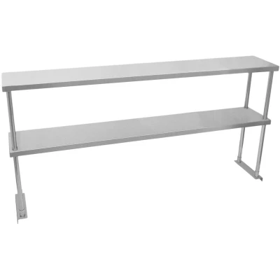 General description How are you supposed to be the next Gordon Ramsay with no storage space in your kitchen? Problem solved... our KuKoo Stainless Steel Over Shelf will provide you with a MASSIVE 100kg capacity per shelf! The easy to clean, #304 stainless steel shelves are perfect for use in kitchens, restaurants, cafés, and many other commercial settings. Technical specifications Brand: KuKoo Shelves: 2 Weight: 13.9kg Capacity: 100kg per shelf Material: #304 Stainless Steel Height: 750mm / 75cm / 29.1" Width: 1500mm / 150cm / 59.1" Depth: 300mm / 30cm / 11.8" Shelf Thickness: 30mm / 3cm / 1.2" Compatibility and accessories FREE fixing kit included - ideal for fixing your new shelves to our 5ft KuKoo catering bench. Usage Perfect for all kitchen environments. Provides maximum storage with a capacity of 100kg per shelf.