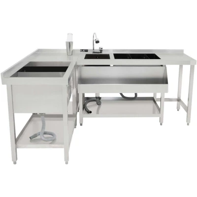 General description Transform your bar into the ultimate cocktail-making hub with this premium cocktail bar bundle. Designed for efficiency, style, and durability, this set includes a cocktail bar station, an ice well unit, and a modular corner unit - all crafted from high-quality #304 stainless steel. Whether you're a professional bartender or a home mixologist, this all-in-one setup ensures seamless service, keeping everything within reach while maintaining a sleek and modern aesthetic. Technical specifications Material: #304 Stainless Steel Colour: Silver Weight: 41.7kg Height: 84.2cm / 0.84m / 33.1” Width: 135cm / 1.35m / 53.1” Depth: 68.5cm / 0.69m / 27” Depth Without the Speed Rail: 55cm / 0.55m / 21.7” Sink Dimensions: 37.5cm x 30cm Ice Well Dimensions: 54cm x 42cm x 30cm Ice Well Capacity: 67L Bin Void Dimensions: 75cm (H) x 29.3cm (W) x 46.5cm (D) Boston Shaker Tin Capacity: 750ml (25oz) Boston Shaker Glass Capacity: 550ml (18oz) Ice Well Weight: 38kg Ice Well Height: 850mm /