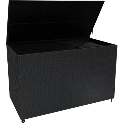 General description Keep your outdoor space effortlessly tidy with this premium 996L rattan storage box, designed for both practicality and style. Built with durability in mind, it features machine-woven polyrattan for a sleek, high-quality finish that resists wear over time. The sturdy steel frame ensures long-lasting support, making it a reliable choice for gardens, patios, or even indoor spaces. A UV-resistant exterior enhances its modern aesthetic and ensures long-term durability. Boasting a generous 996L capacity, this thoughtfully crafted chest serves as the ideal accompaniment to Jardi Serafina rattan furniture sets, providing comfortable housing for cushions or serving as standalone storage for garden tools and outdoor essentials. This ensures protection during colder, wetter months while keeping your space clutter-free. Technical specifications Colour: Black Weight: 25.9kg Box Material: Polyrattan Frame Material: Steel Lining Material: Oxford Height: 98cm / 0.98m / 38.6”