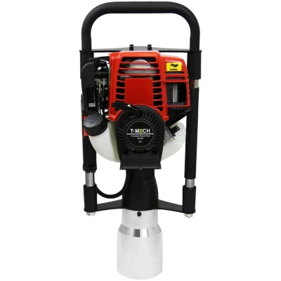 General description Don't struggle with posts, pegs, or stakes any longer with T-Mech’s 4-Stroke Petrol Post Driver featuring a 120mm attachment. This high-powered post driver allows you to save time building fences with a super fast speed of 700-1350 BPM, enabling you to complete your jobs in record time. The included 120mm attachment allows for quick hammering of larger posts into the ground. Easily change attachments with the handy FREE tool kit included for assembly, and transport your post driver effortlessly with the FREE carry case. *Not to be used to drive in metal posts/stakes.* Technical specifications Power: 1.0 kW Engine: 4 Stroke, 37.7 cc Single Cylinder, Air Cooled Max Speed: 5000 rpm Fuel Tank Capacity: 0.65 L Impact Frequency: 700-1350 BPM Fuel Consumption: ≤0.9 l/h Weight: 27 kg Dimensions: Length: 737 mm, Depth: 300 mm, Width: 365 mm Hand-Arm Vibration Rating: 13 m/s² Other information Includes a FREE tool kit for assembly Comes with a FREE carry case