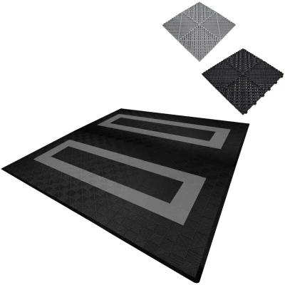 MonsterShop Vented Garage Floor Tiles with Edges 165 Black & 60 Grey
