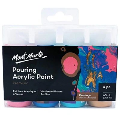 Mont Marte Premium Pouring Acrylic Paint, Flamingo, 4pc Set, 60ml Bottles