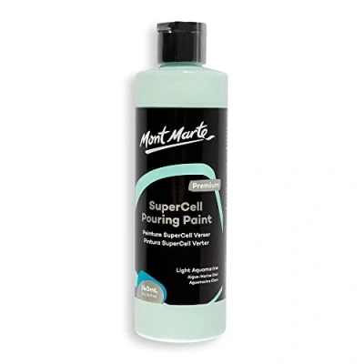 MONT MARTE SuperCell Pouring Paint Premium 8.1 US fl.oz (240ml) Light Aquamarine Bottle, Creates Instants Cells In Fluid Art, Ideal for Craft, Pour Art