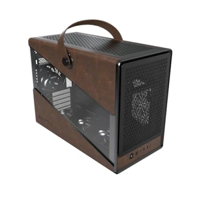 Portable suitcase-style leather handle for convenient mobility. Elegant leather and metal fusion with a timeless aesthetic design. Supports high-performance components including RTX 40 Series GPUs, ATX PSU, and 360mm AIO liquid cooling. Includes 4 x 120mm fans for optimal airflow. Additional headphone hanger for added convenience.