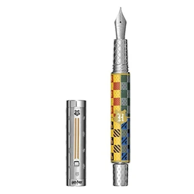 Very beautiful fountain pen from Montegrappa in Harry Potter Hogwarts design The brushed stainless steel cap can be easily opened and closed Made of high quality stainless steel in the colours of the Hogwarts houses The pen has a size of 14.1 cm when closed Gryffindor, Slytherin, Hufflepuff and Ravenclaw: all houses combined in one pen