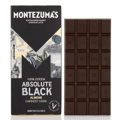 Montezuma's Absolute Black, 100% Cocoa, Dark Chocolate With Almonds, Gluten Free & Naturally Vegan, 90g Bar