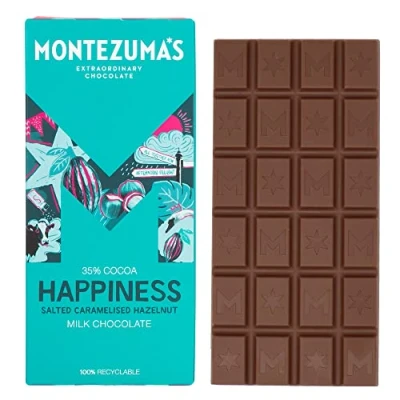 Montezuma's Happiness, 35% Cocoa, Milk Chocolate With Salted Caramelised Hazelnuts, Gluten Free, 90g Bar