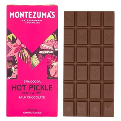 Montezuma's Hot Pickle, 37% Cocoa, Milk Chocolate with Chilli & Lime, Gluten Free Organic, 90g Bar