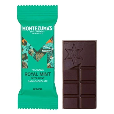 Montezuma's Royal Mint, 74% Cocoa, Dark Chocolate With Peppermint, Gluten Free, Naturally Vegan & Organic, 25g Mini Bar
