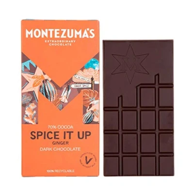Montezuma's Spice It Up, 70% Cocoa, Dark Chocolate With Ginger, Gluten Free & Naturally Vegan, 90g Bar