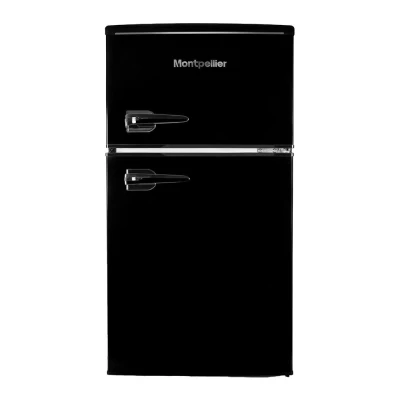 Good to know- This 84 litre Montpellier fridge freezer adds a bit of retro 50s style to your kitchen- Its undercounter design makes it a great choice for smaller kitchens- Stock up on your favourite juices and treats on the 2 shelves and in the door compartments- Delicious raspberry ripple or fresh cod fillets, store your frozen favourites in its 25 litre freezer- The salad crisper stops your fruits and veggies from drying out quickly, so you can shop less often- With auto defrost tech in the fridge, you won't have to worry about manually scraping icy build ups off the wall___________________________________________________________________________PLEASE NOTE:- Use in outbuildings: This refrigerator is not designed to be used in an outbuilding - both your food and the appliance can be damaged. Do not use it in any unheated area.- Door hinged on right: Door reversal is not available on this product - please don't select door reversal service when adding this product to your basket.