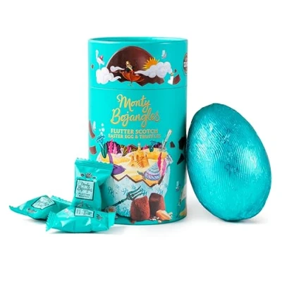 LUXURIOUS CHOCOLATEY TRUFFLES: Discover the magical world of Monty Bojangles with our Flutter Scotch Easter Egg Gift Box. A creamy milk chocolate Easter Egg and 6 individually wrapped luxury cocoa dusted luxury Chocolatey Truffles. DELICIOUS CHOCOLATEY TRUFFLES: Step into a world of chocolatey indulgence with our exquisite cocoa dusted truffles, infused with creamy butterscotch chips and a cheeky hint of sea salt for the ultimate luxury Chocolatey Truffles. Suitable for vegetarians. THE PERFECT EASTER EGG GIFT: Treat your loved ones this Easter to these deliciously moreish luxury cocoa dusted truffles in a beautifully designed gift box, along with a classic chocolate Easter Egg. A wonderful chocolatey collection, in one uniquely designed box. AWARD WINNING CHOCOLATE: Our incredible Flutter Scotch chocolatey truffles won a prestigious Great Taste Award in 2023. Monty Bojangles as a brand, has won 49 Great Taste Awards for our delicious chocolatey truffles. SHARE IN THE ADVENTURE: A stunning chocolate gift set to show someone you are thinking of them this Easter - great for friends, family, colleagues or teachers. Each box contains 6 individually wrapped truffles, an indulgent treat to share!