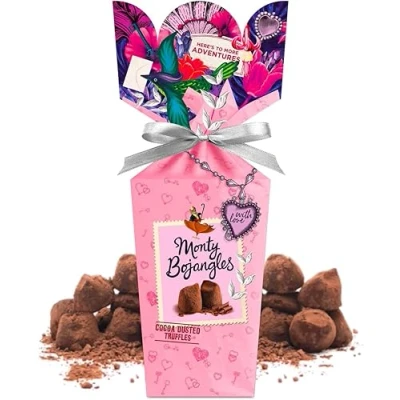 LUXURIOUS CHOCOLATEY TRUFFLES:Discover the magical world of Monty Bojangles with our With Love Cocoa Dusted Truffles Gift Box. Indulgent divine chocolate flavoured luxury Chocolatey Truffles in beautiful sentimental giftbox. Suitable for vegetarians THE PERFECT CHOCOLATE GIFT: Treat your loved one to these deliciously moreish luxury cocoa dusted truffles - the ultimate gift set for the chocolate lover in your life. Personalise your gift in the ‘To' and 'From' spaces on the side of the box AWARD-WINNING TRUFFLES: Our chocolates have been dubbed the tastiest truffles in the kingdom, winning many awards, including a prestigious 1 Star Great Taste Award in 2024 for our Choccy Scoffy flavour. Suitable for vegetarians and adored by everyone SHARE IN THE ADVENTURE: A stunning chocolate gift set for Valentine’s Day, birthdays, Christmas & Mother’s Day, thank you gift for friends or teachers. Each box contains 12 individually wrapped truffles,an indulgent treat & the perfect chocolate gift UNIQUELY DELICIOUS: Every single one of our unique and utterly delicious luxury truffles has been carefully crafted to deliver the most indulgently chocolatey experience imaginable. Unforgettable flavours, deliciously moreish chocolatey truffles