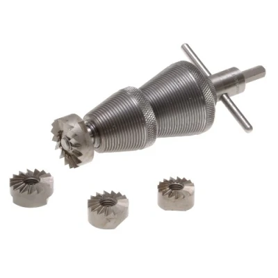 General description This tap reseating tool is designed to re-cut the seats of worn or damaged taps and stopcocks without disconnecting from the pipework. It is suitable for use with old series 1/2 inch and 3/4 inch BS1010 flat seats, helping to restore proper sealing and functionality of taps. Technical specifications Compatible with 1/2 inch and 3/4 inch BS1010 tap seats Includes flat cutters of 17mm, 19mm, 20mm, and 25mm (11/16 inch, 3/4 inch, 13/16 inch, 1 inch) Supplied with 2 tapered cones for different thread types Cutters are case hardened for durability Feedscrew allows fine adjustment for precise cutting All parts are interchangeable Compatibility and accessories Suitable for taps with threaded top bodies For taps with recessed threads, use the parallel bush series Includes flat cutters and tapered cones for various sizes and thread types Installation Ensure the tap body is threaded to the top for proper fitting Screw the tapered cones into the top of the tap body Select the