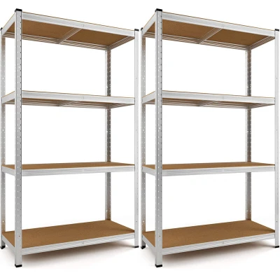 Monzana® 2x 4 Tier Heavy Duty Galvanised Steel Shelving Unit 160x90x40cm 700kg Capacity MDF Shelf Panels Home Workshop Workbench Garage Shed Storage Metal Racking