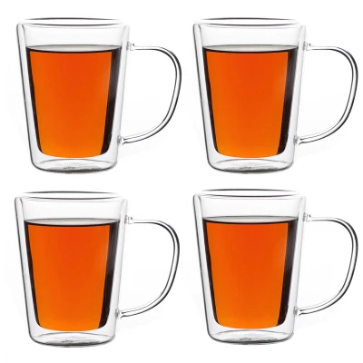 MONZANA® 4 Piece Thermal Tea Glass Set Insulated Double Walled Coffee Cups with Handles Hot and Cold Drinks Dishwasher Safe Transparent Design 250 ml