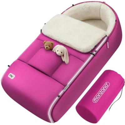 Monzana® Baby Footmuff Extra Warm Cosy Toes Universal Pushchair Stroller Buggy Pram Car Seat Room for Growth Converts to Changing Mat Outdoor Water Resistant Windproof Winter Pink