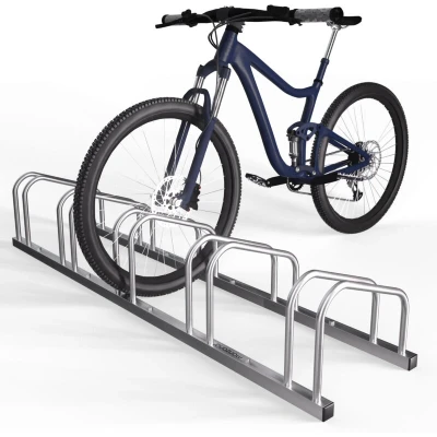 General description Space-saving and handy parking solution for bikes made from Monzana®. This bicycle stand is suitable for both indoor and outdoor use and can accommodate all common bike sizes with tyre widths up to 60mm. Technical specifications Capacity: 2 to 6 bikes Dimensions (LxWxH): 43/71/100/130/160 x 32 x 27 cm Space between bikes: approximately 30 cm Tube diameter: 16 mm Tyre width: 35-60 mm Material: Metal Weight: approximately 2.3/3.8/5.1/6.5/7.8 kg (depending on the number of bikes) Installation Mounting material is included, making assembly very easy. The stand can be mounted on the wall or on the ground.