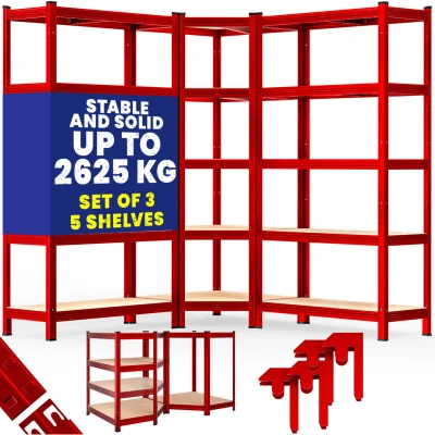 Monzana® Heavy Duty Corner Shelving Unit Set of 3 15 MDF Panels Garage Basement Racking Storage Workshop Shelves 2x 180x90x40cm 1x 180x70x40cm 2625KG Load Capacity Red